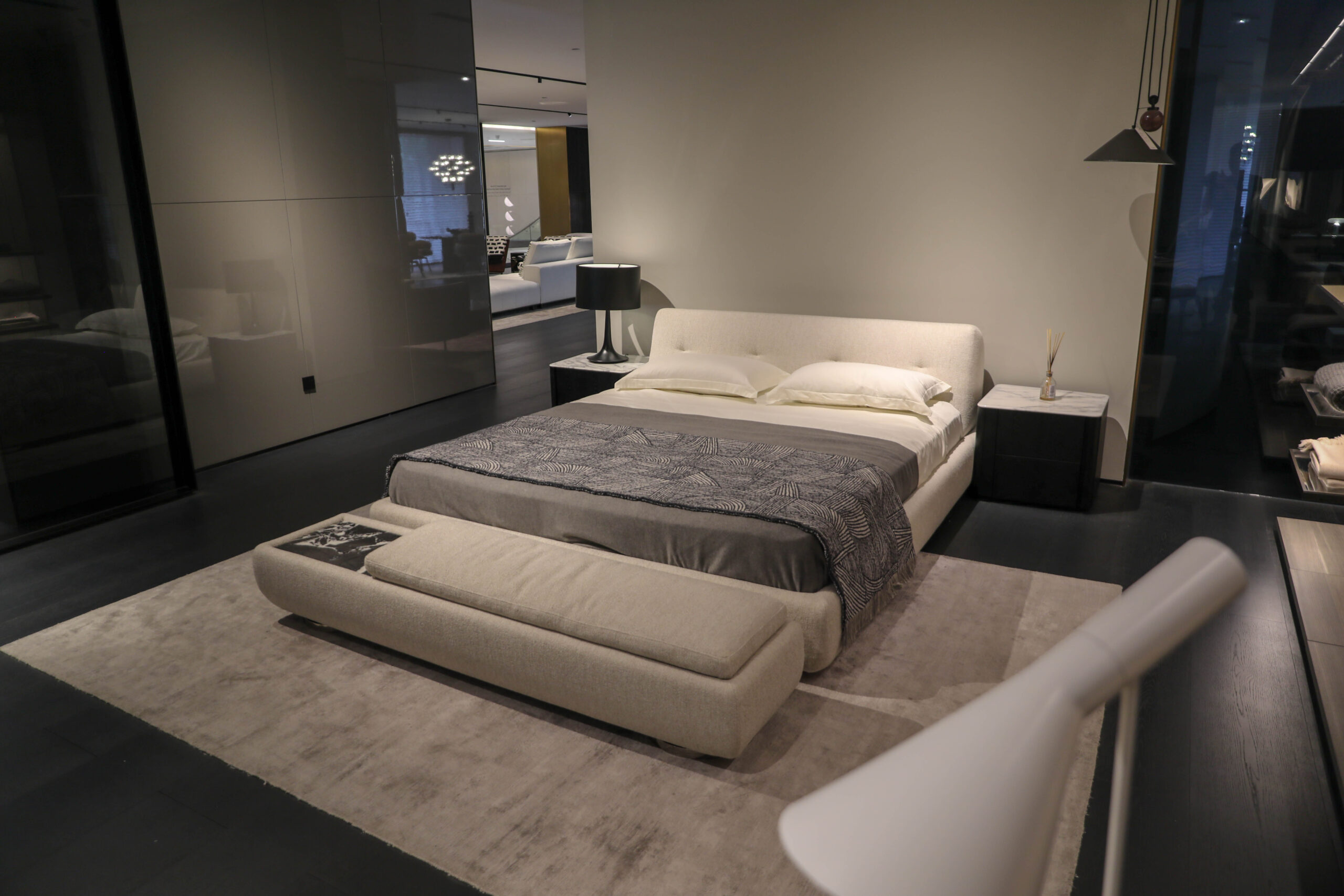 Discover the perfect blend of modern elegance and comfort with our contemporary bed, thoughtfully styled with a cozy throw and plush pillows. Featuring a sleek, upholstered headboard and a streamlined frame, this bed serves as the centerpiece of your bedroom. The inviting throw adds a layer of warmth and texture, while the decorative pillows enhance its stylish appeal. Complete with crisp bedding and a sophisticated setting, this modern bed creates an inviting sanctuary for rest and relaxation.