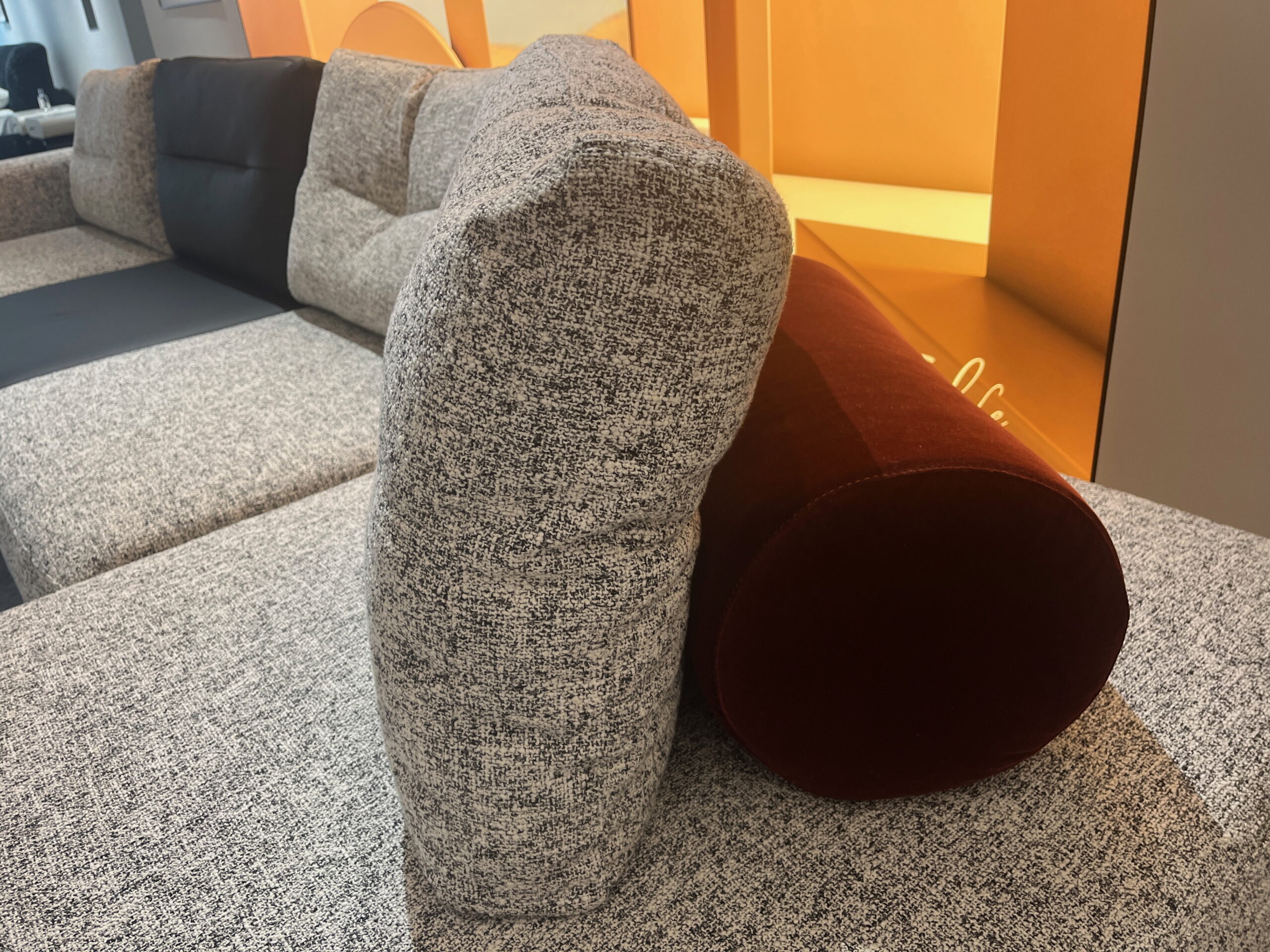 ① Arc shaped cutting, integrated molding, with high requirements for shape proportion.<br>② The flat dual track process, combined with 3D sponge, presents a round and full shape.